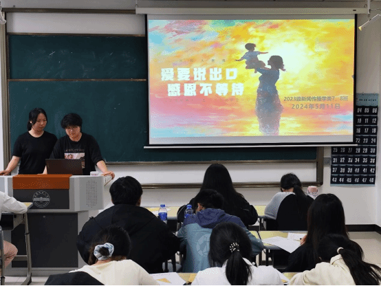 “同學們,猜一猜明天是什么節日啊?”“母親節!”5月11日,新聞傳播學類專業2023(7)、(8)班在K202教室開展以“愛要說出口,感恩不等待”為主題的團建活動。活動開始前,活動負責人、新聞傳播學類專業2023(7)、(8)班的班長楊雨霏、朱研溪提前為每位同學準備好信紙和信封。朱研溪說:“我們希望通過寫信這種傳統而深情的溝通方式,讓同學們勇敢表達自己的心聲,將對母親的愛訴說于筆尖?!睂W生們觀看一段關于母愛的感人短片后,...